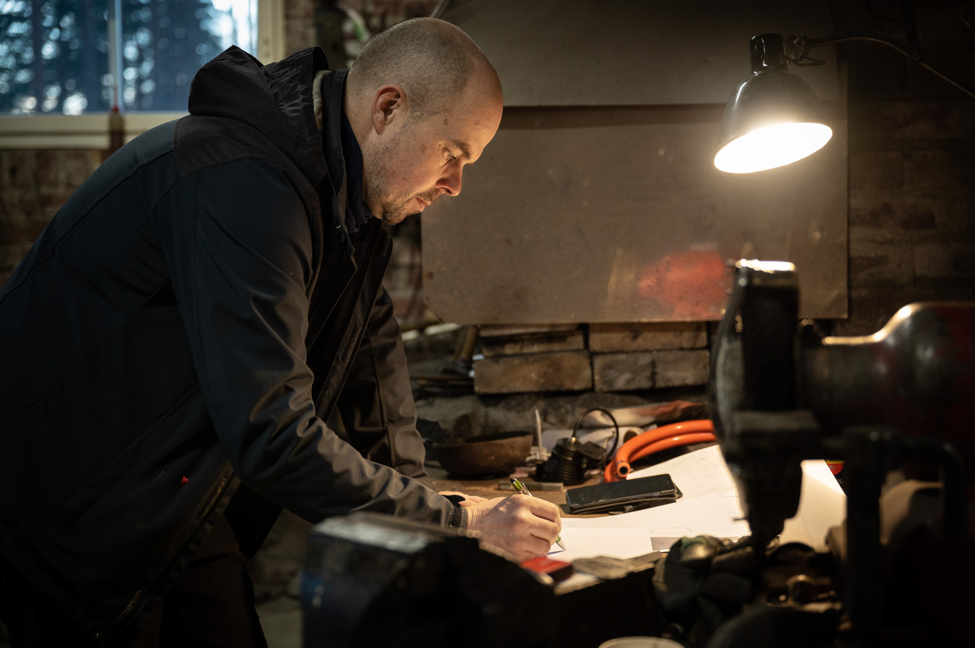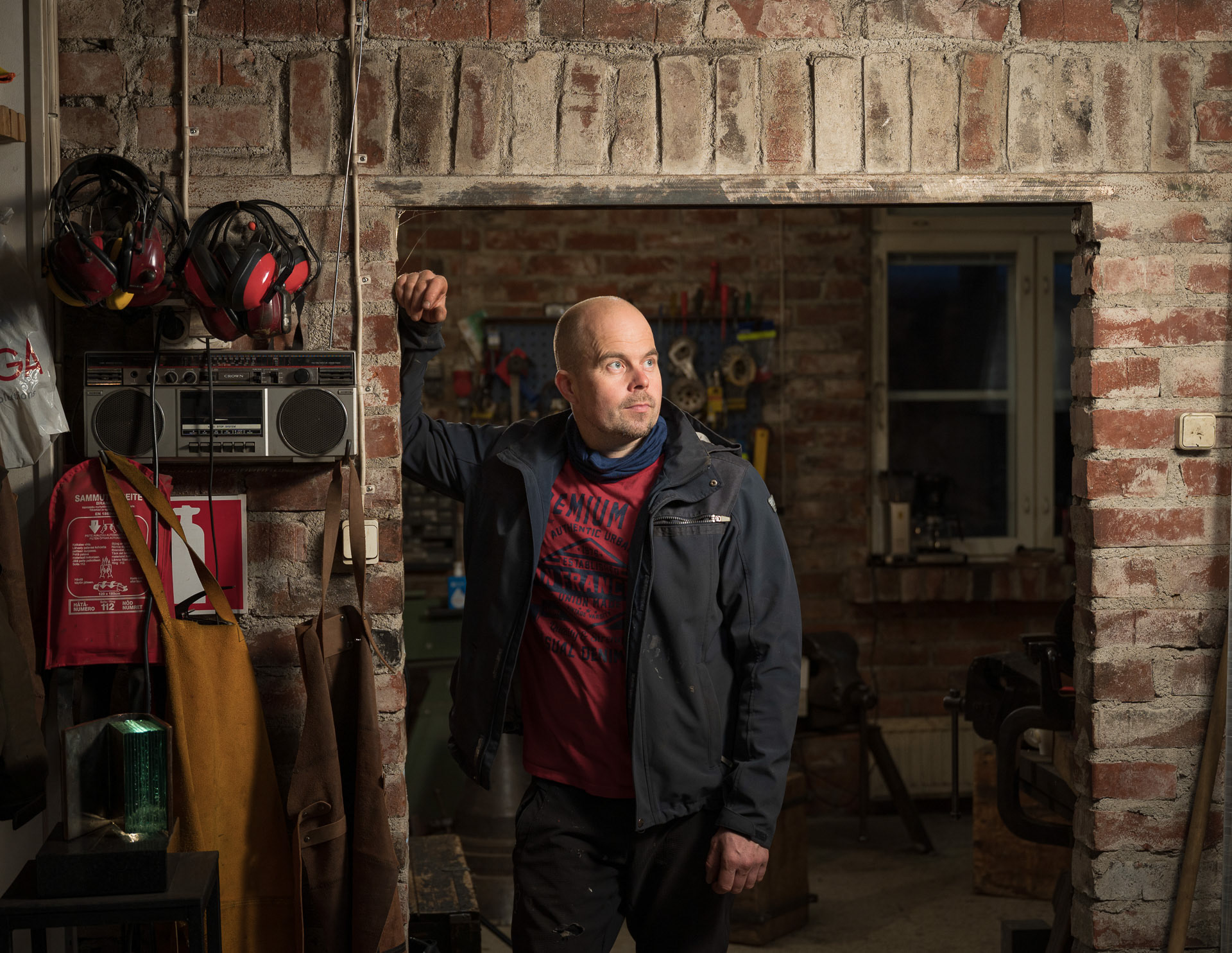 Samuli Alonen käyttää töissään metallia ja kiveä, Design Alonen